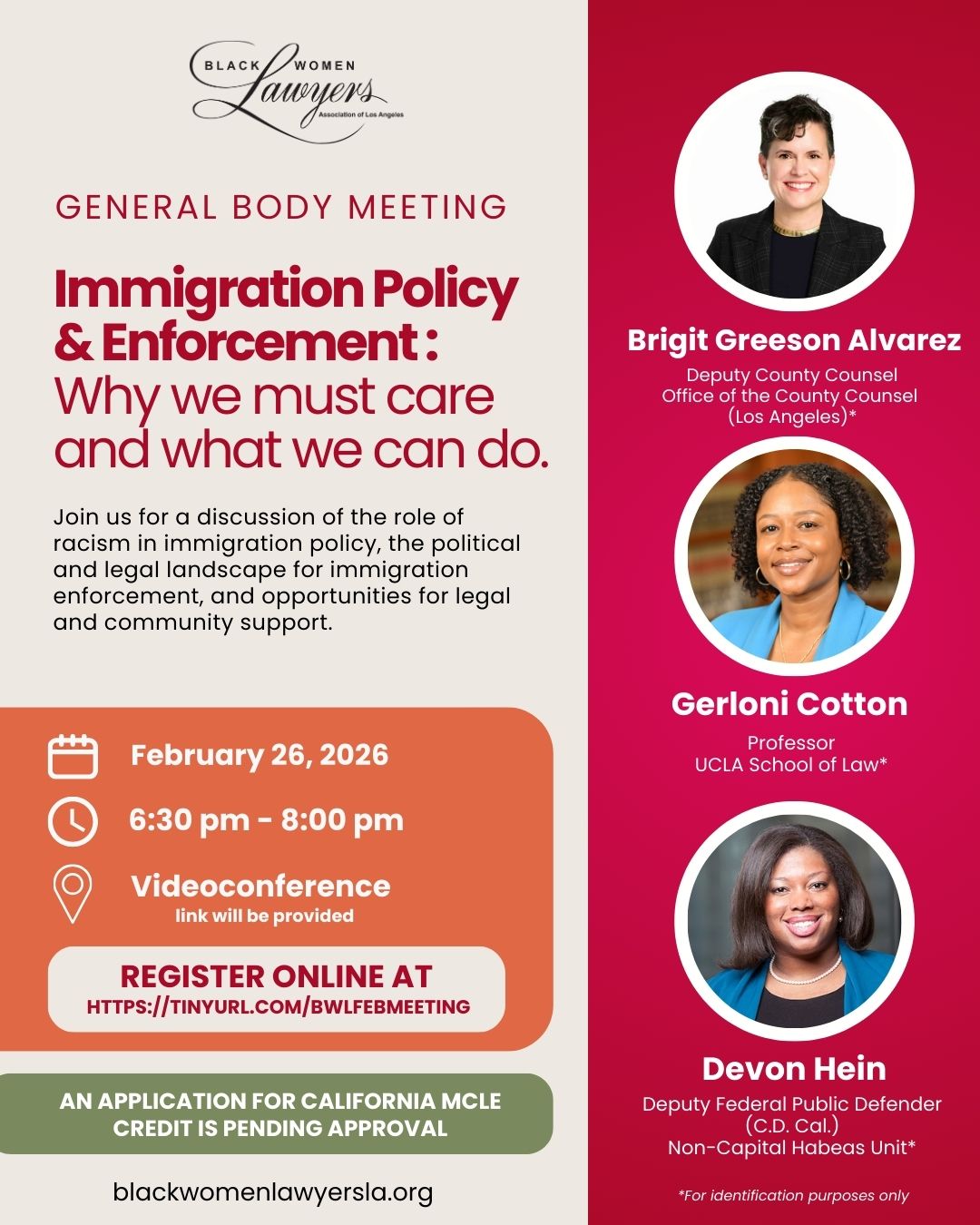 For more information, please contact BWL President-Elect, Alisha Burgin, at Pres-Elect@BlackWomenLawyersLA.org.